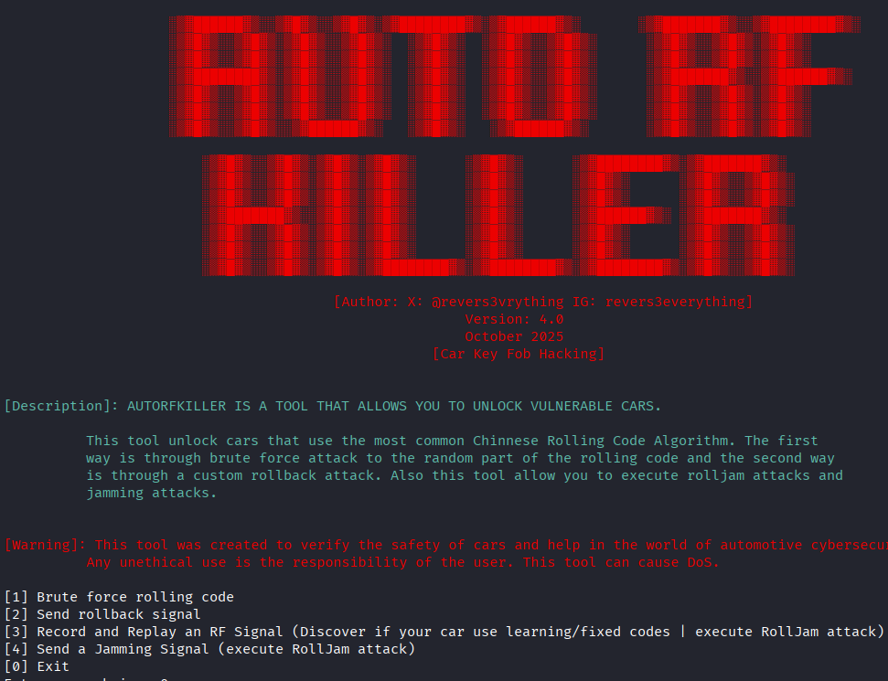 Real Car Demo PoC: Brute force attack against the subsequent rolling code after capturing the current rolling code. Test vehicle: older Mazda model, the original RKES had been replaced with the aftermarket Chinese RKES, making the vehicle brand IRRELEVANT.