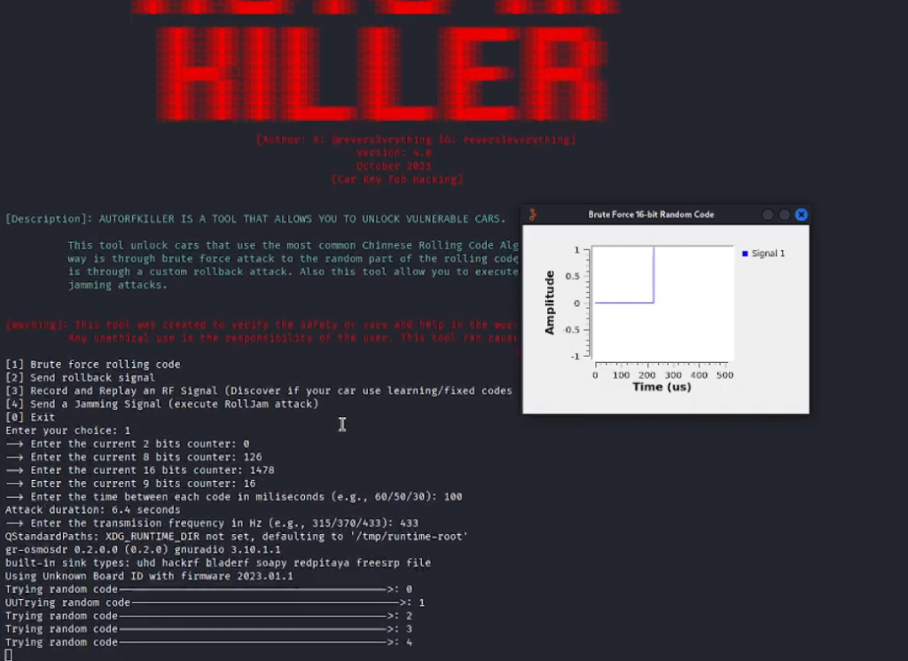 Demonstration of a brute-force attack on the next rolling code after sniffing the current one: