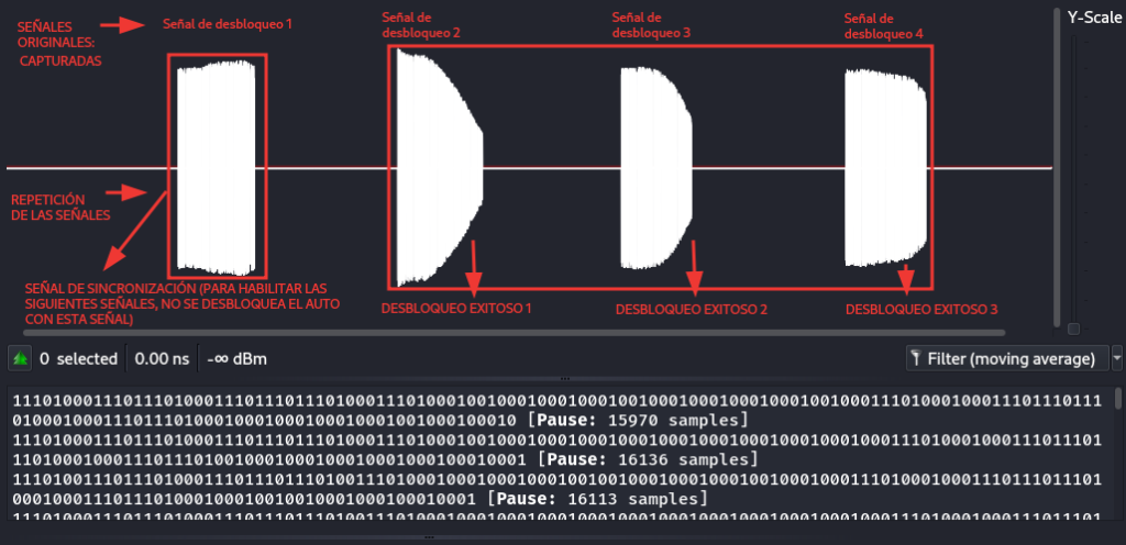 This Chinesse RKES also is vulnerable to RollBack attack, where we cand send a signal to resyncronize the window of the RKES and after that, send previous/used/old rolling codes (ex, n-100). For example: