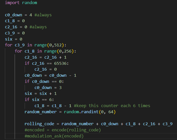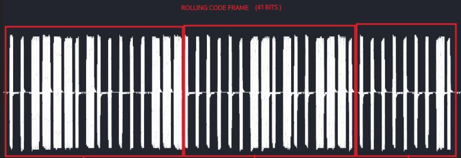 - The rolling code frame/signal is not encrypted using AES or another secure symmetric encryption. The coding used is very weak!!.