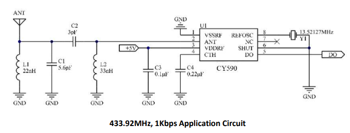 - Oscillator SFR433k (Frequency is 433Mhz)